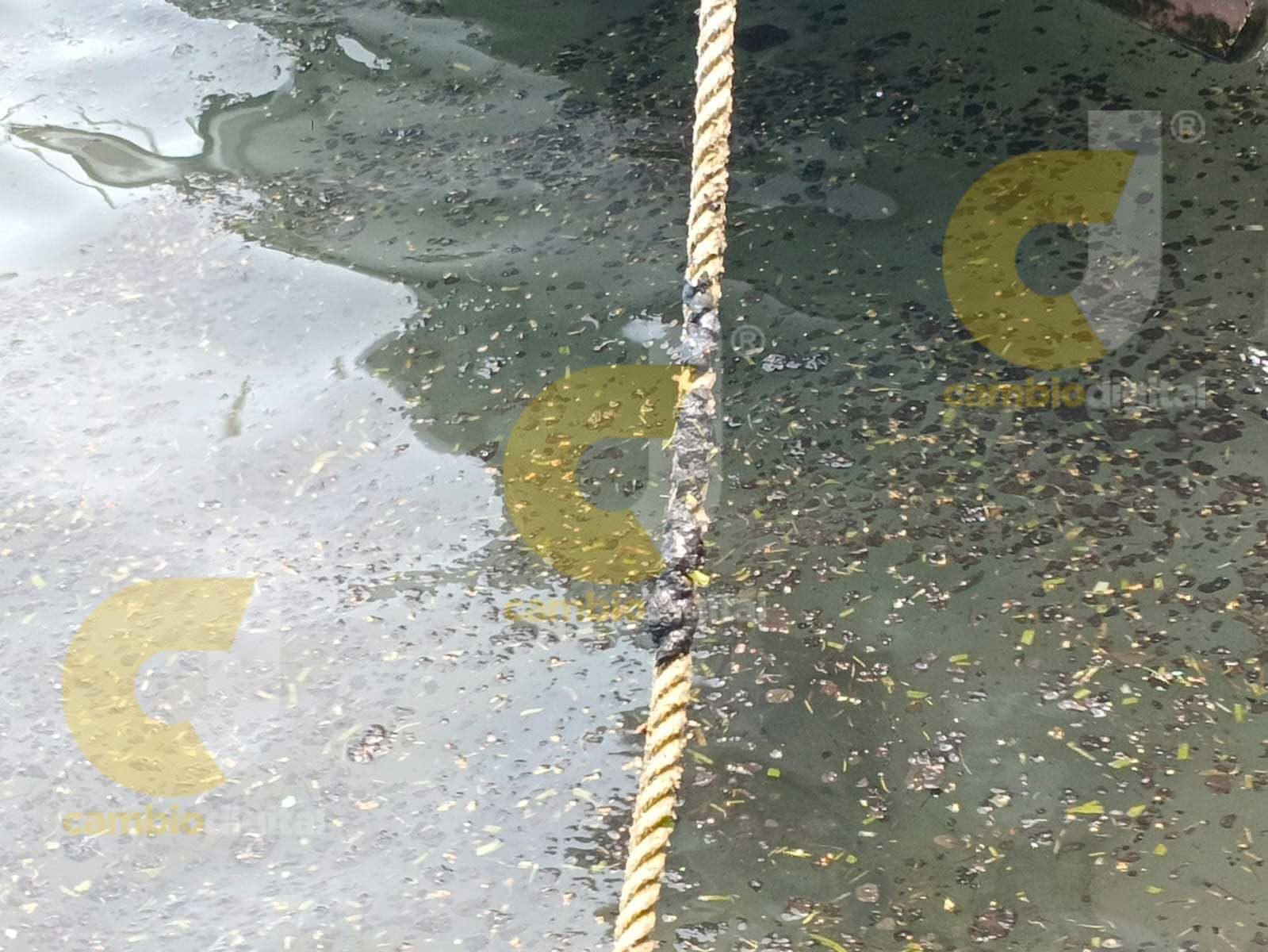 Veracruz, Ver.- Pescadores del Muro de Pescadores, ubicado en el bulevar Manuel Ávila Camacho, reportaron este martes la llegada de varias manchas de chapopote que cubrieron la orilla del muelle y, con la fuerza de la marea, se impregnaron sobre el asfalto de la zona.