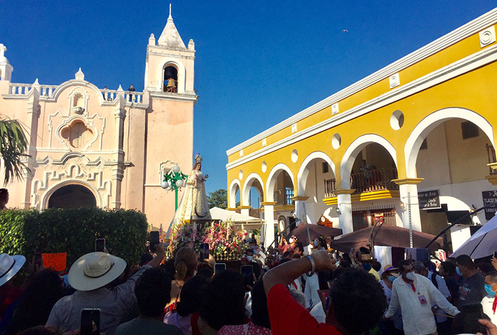 En punto de las 16:00 las campanas del templo que alberga la imagen de la Santísima Virgen de La Candelaria, empezaron a repicar llamando a la “gloria” a los files que se reunieron en el interior y exterior del templo eclesiástico que data del siglo XVII, los cargadores de imagen sacaron a la virgen de las candelas de su templo para continuar el rito que los nativos de esta tierra tenían con la deidad de Chalchicuitle.