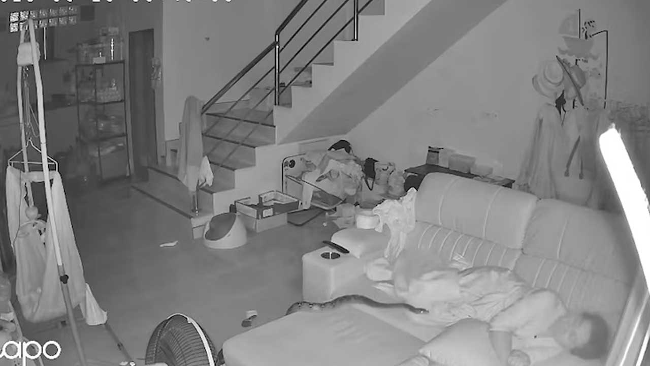 En la grabación, registrada el 26 de septiembre pasado, a las 0.49, la mujer aparece recostada, totalmente ajena al peligro. La pitón avanza lentamente por la sala y termina posándose sobre sus piernas. La escena, difundida por medios como Daily Mail y A2 CNN, llamó la atención por el contraste entre la aparente seguridad del hogar y la irrupción inesperada del animal.