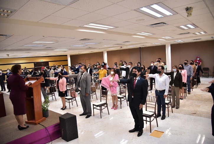 “Con la mirada al frente y con buena atención hacia los justiciables deberán de actuar. Señores Jueces, Secretarios Instructores, Secretarios Auxiliares de Audiencia, Secretarios de Estudio y Cuenta, Actuarios, hombres y mujeres, en conjunción, reciban una gran felicitación por formar parte de la historia, reciban nuestro abrazo con la seguridad de que estaremos muy pendientes de su labor, muy vigilantes de que lo hagan correctamente. Entre todos van a dar respuesta a la sociedad”, finalizó.