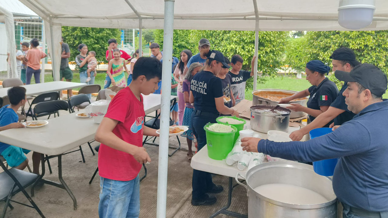 Poza Rica, Ver., miércoles 22 de octubre de 2025.- En las últimas 24 horas, a través del Plan Tajín de la Secretaría de Seguridad Pública (SSP), se han distribuido 2 mil 559 raciones de comida caliente y 35 paquetes alimentarios a familias damnificadas por la vaguada y la depresión tropical 90E en la zona norte del estado.