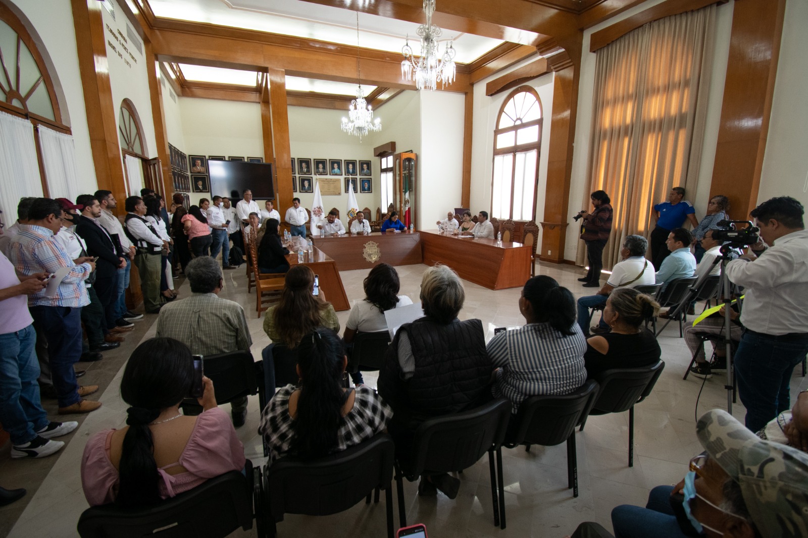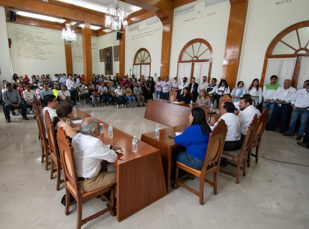 Córdoba, Ver.- El Procurador Estatal de Medio Ambiente (PMA), Sergio Rodríguez Cortés, el presidente municipal de Córdoba, Juan Martínez Flores e integrantes del Cabildo, recibieron a un grupo de ciudadanos, derivado de la propuesta para la instalación del Centro para la Gestión Integral de Residuos Sólidos Urbanos en Colinas de San José, para resolver dudas sobre el proyecto.