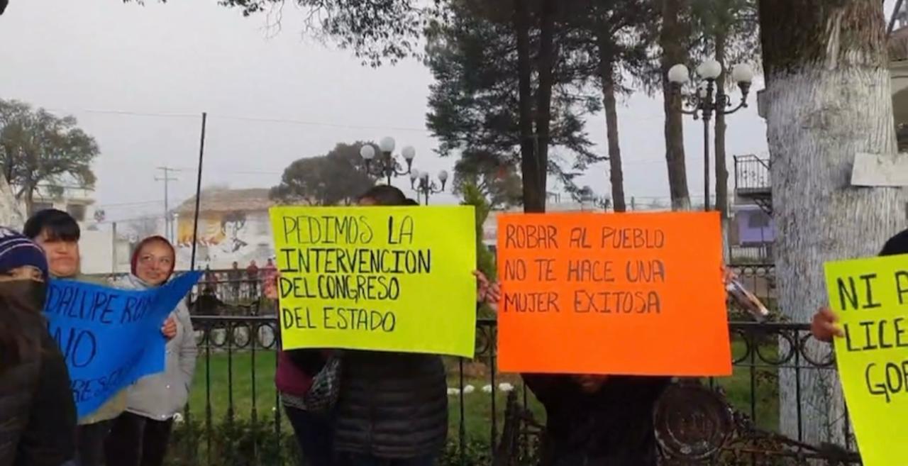Los manifestantes exigen la destitución de la presidenta municipal, #GuadalupeRomeroSánchez, ante la falta de obras, la prepotencia con que actúa ella y sus funcionarios y las represalias en que incurre contra quiénes no la apoyan.