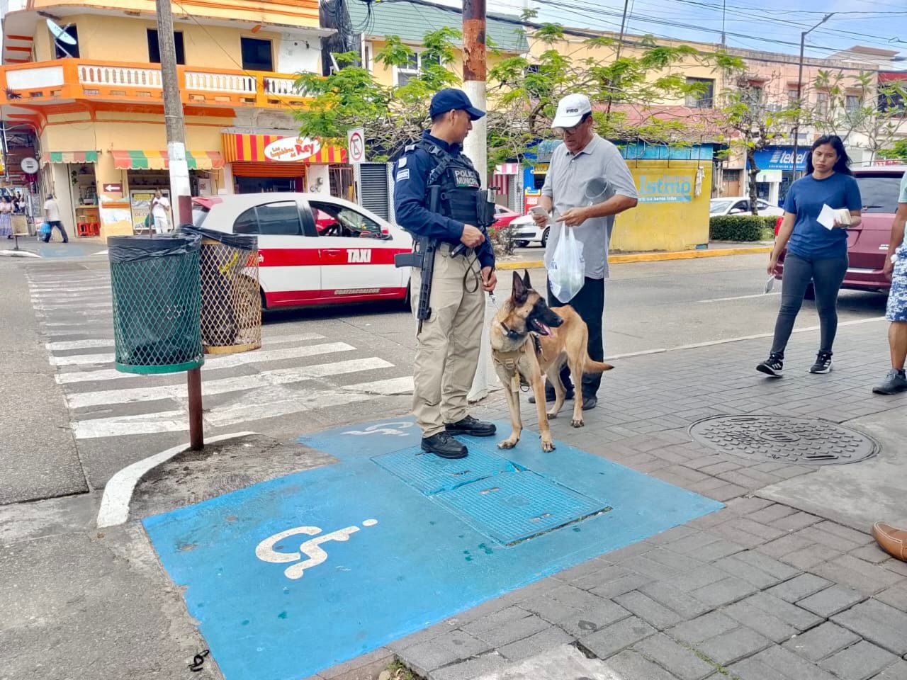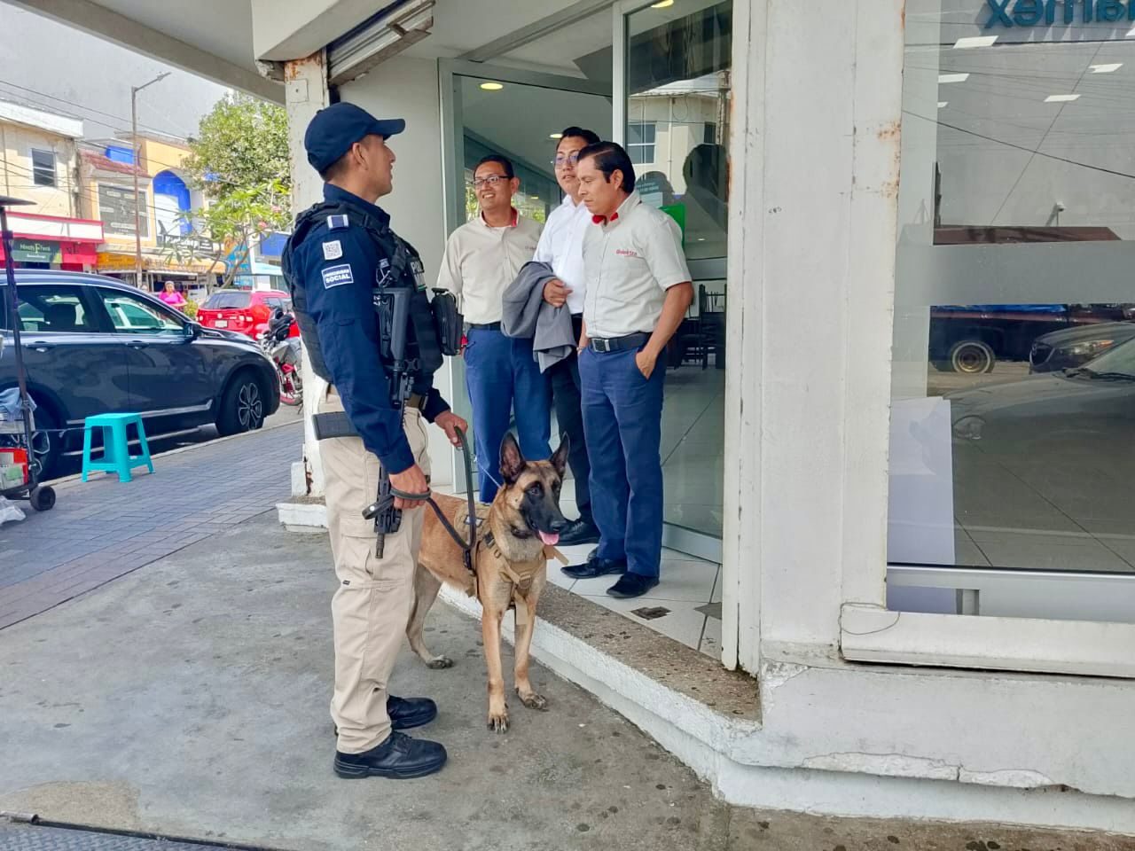 Policía de Coatzacoalcos fortalece proximidad social con Unidad Canina en el centro de la ciudad