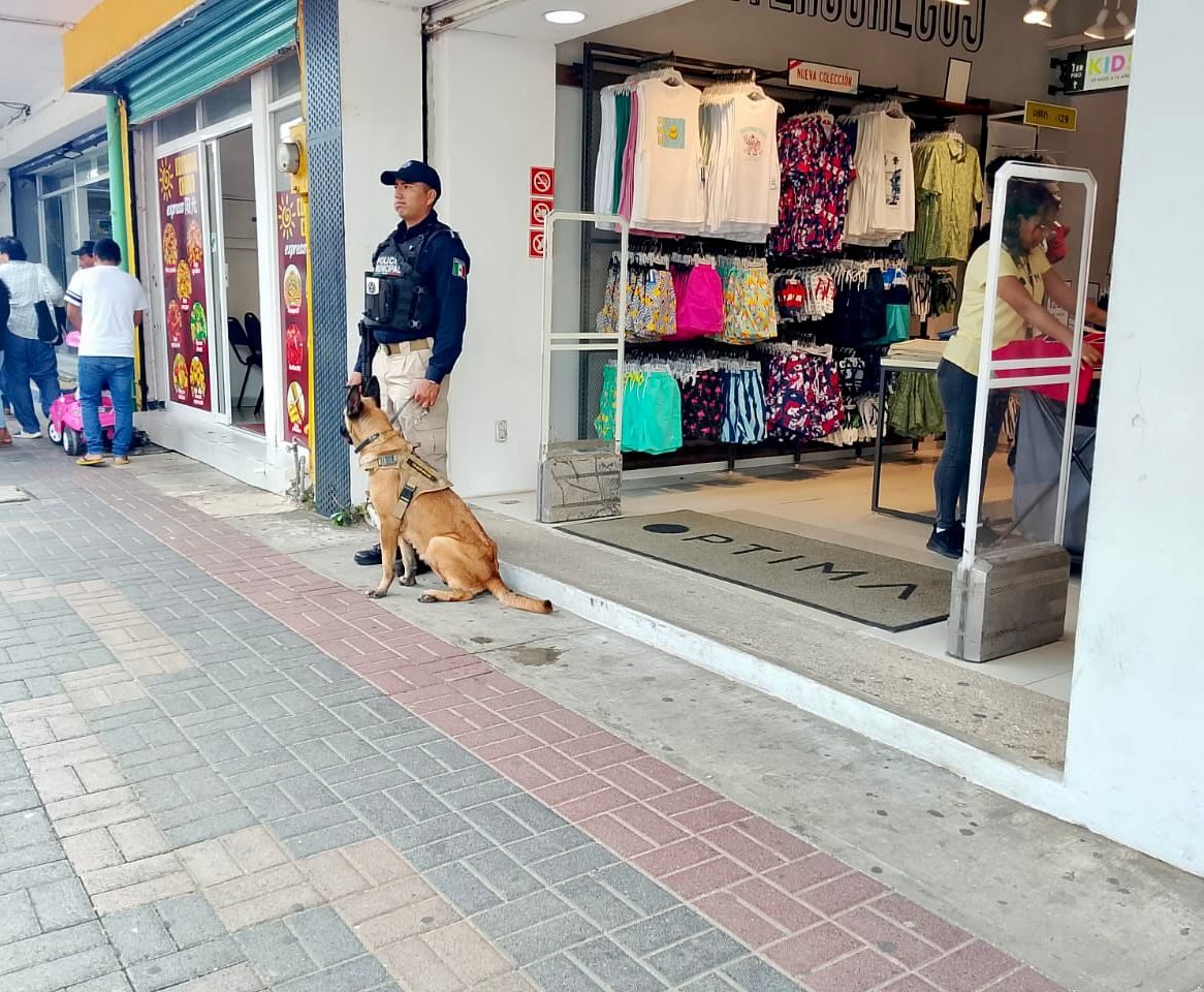 Por lo que la Policía Municipal de Coatzacoalcos llevó a cabo acciones de proximidad social a través de su Unidad Canina en las inmediaciones del centro de la ciudad.