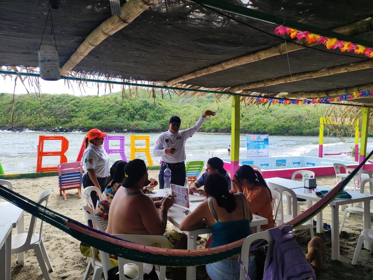 Policía Turística y SP vigilan y orientan a visitantes en la Barra de Sontecomapan