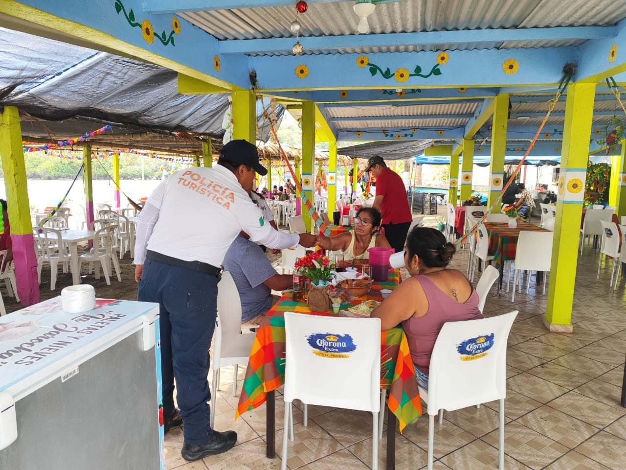 Catemaco, Ver.- La tranquilidad también se construye con presencia. En la Barra de Sontecomapan, la Policía Turística y Seguridad Pública se mantienen atentos, orientando, acompañando y brindando atención a quienes nos visitan, con cercanía y disposición.