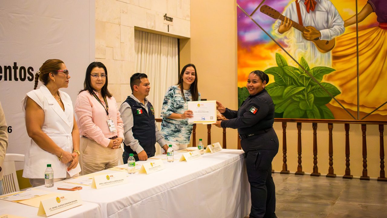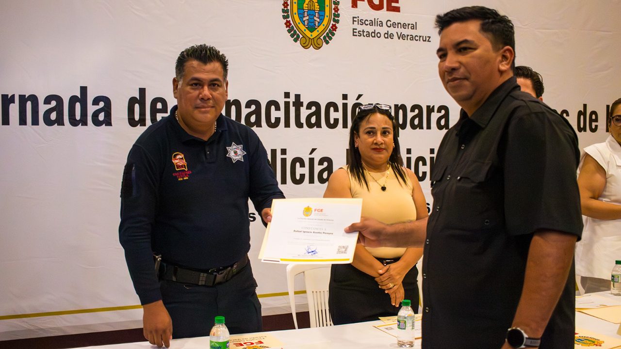 La FGE Veracruz entregó este día constancias de la capacitación concluida a policías de San Andrés Tuxtla, Hueyapan de Ocampo, Lerdo de Tejada, Ángel R. Cabada, Santiago Tuxtla y Catemaco.