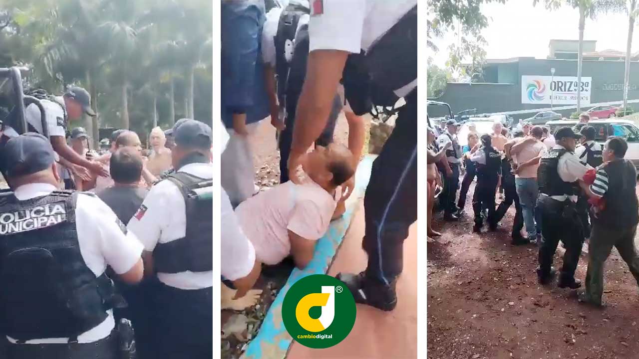Orizaba, Ver.- Policías municipales de Orizaba, detuvieron a un hombre y jalonearon a otros familiares, incluyendo a dos menores de edad, luego de que llegaran a desayunar al balneario Ojo de Agua y amarraron a sus perritos a un poste de luz.
