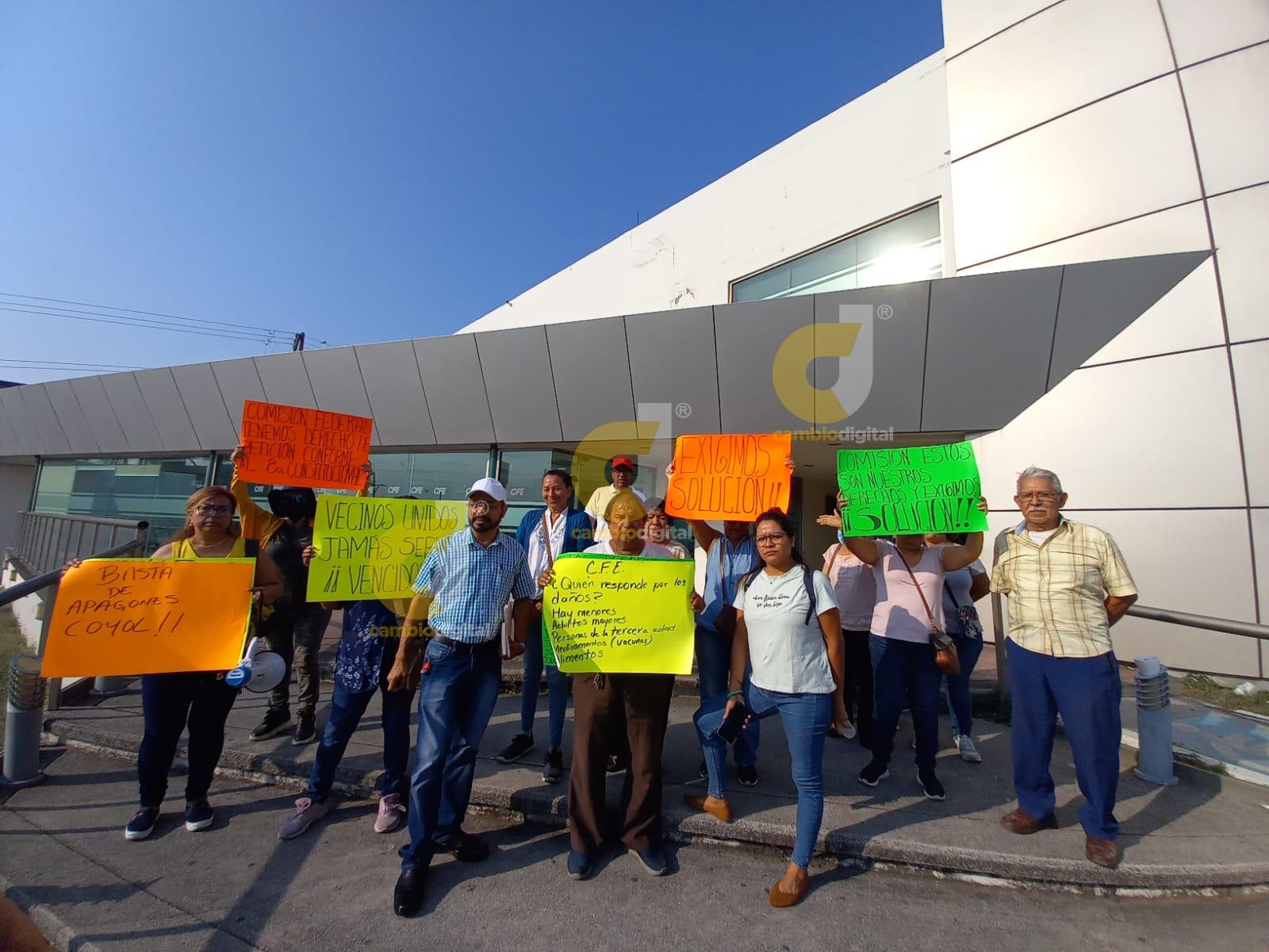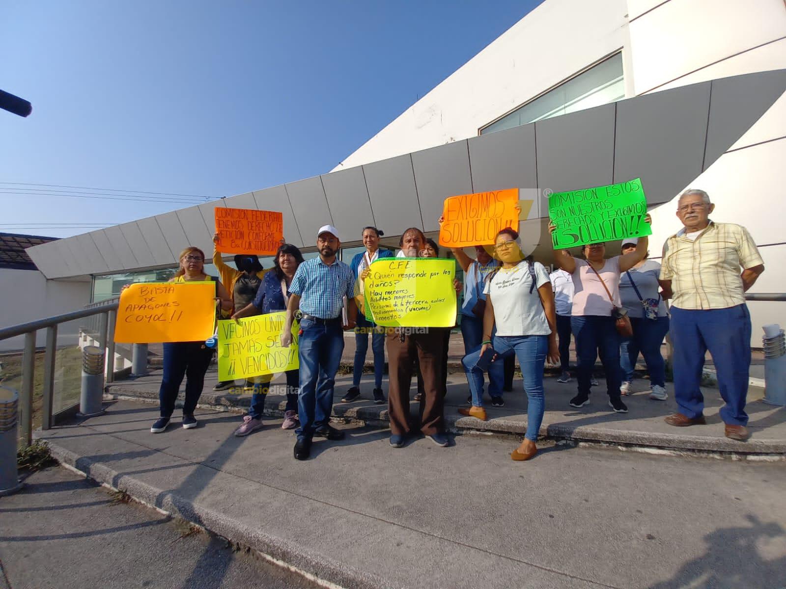 Por apagones, se manifiestan en la CFE habitantes de El Coyol