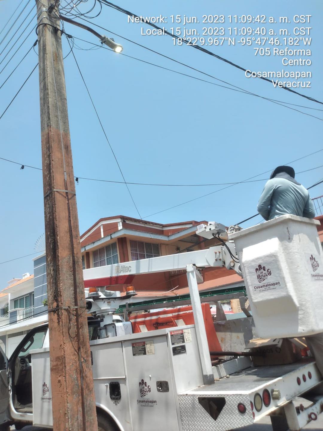 Cosamaloapan, Ver.- Continúan los trabajos por parte de Alumbrado Público por instrucciones del alcalde Gustavo Sentíes Hernández a las lámparas led que estaban encendidas 24 horas, en diferentes colonias de Cosamaloapan.