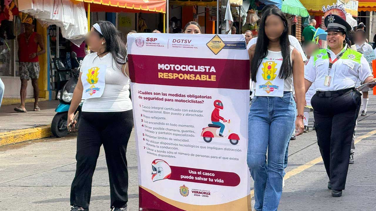Durante el recorrido, los estudiantes portaron pancartas con mensajes sobre la importancia de usar casco, respetar los señalamientos y proteger la vida al conducir una moto.