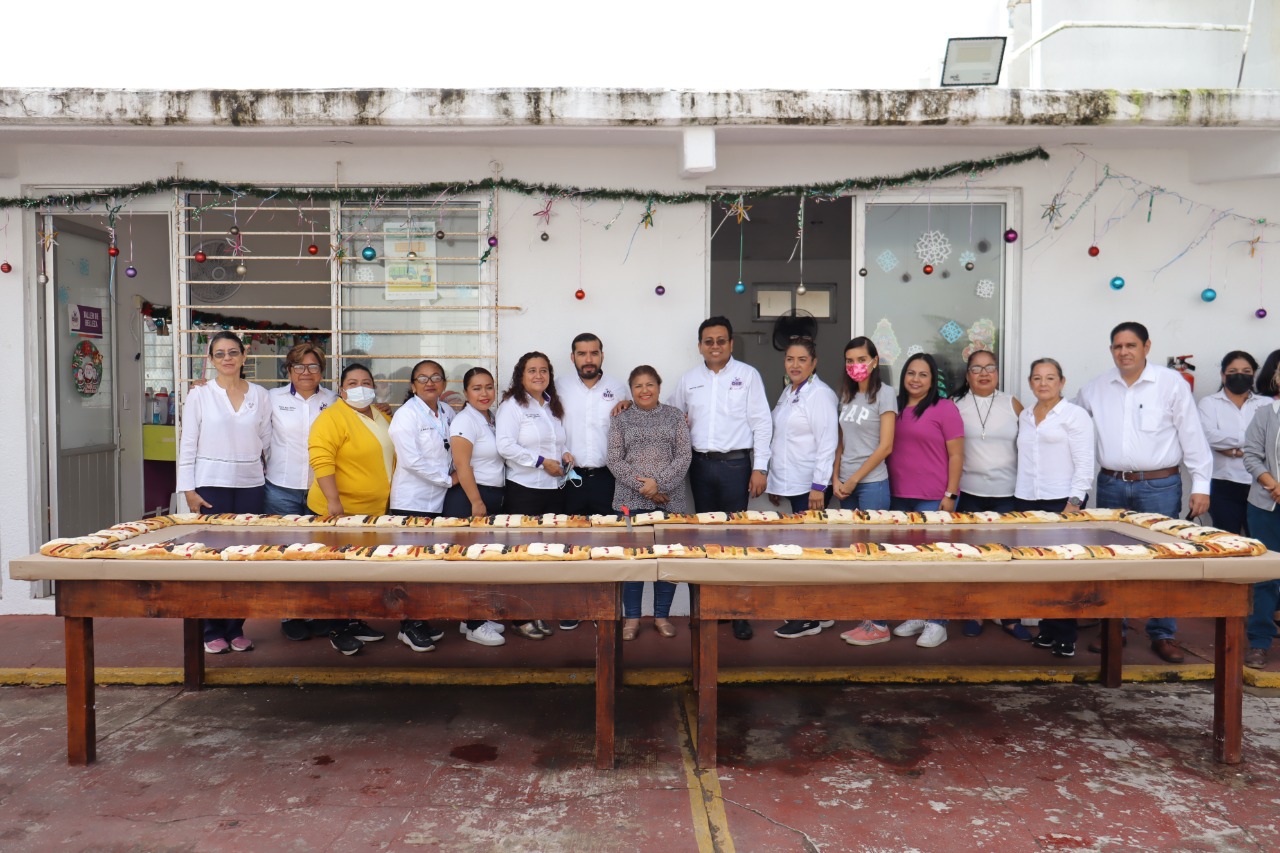 Coatzacoalcos, Ver.-La presidenta del DIF Municipal Coatzacoalcos, señora Esther Mortera Zetina, realizó la tradicional partida de “Rosca de Reyes” con todo el personal que pertenece al organismo asistencial, acompañada del director general maestro Elit Seba Juárez.