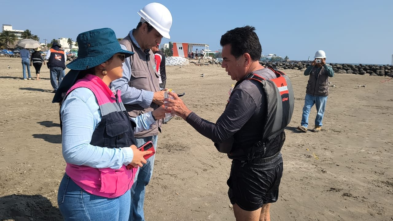 Imagen: Fotos: Ángeles MontesVeracruz, Ver.- Ante la cercanía del periodo vacacional de Semana Santa, autoridades de los tres niveles de gobierno iniciaron un muestreo en las playas del puerto de Veracruz para evaluar la calidad del agua y garantizar que sean seguras para los visitantes.