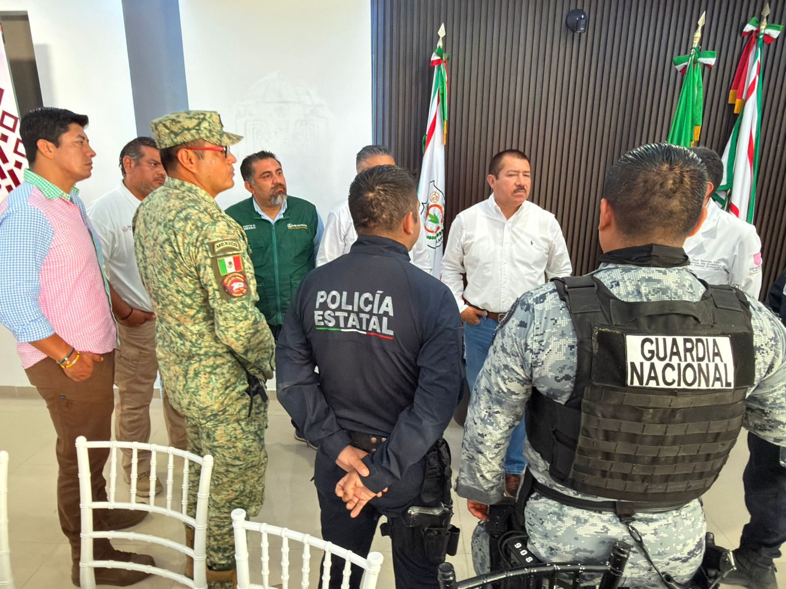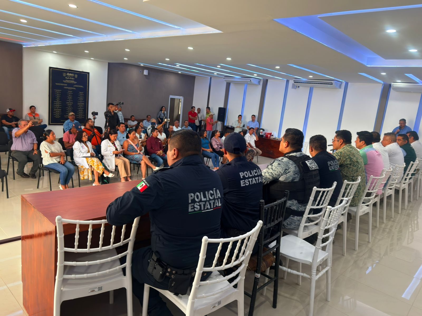 En la conferencia de prensa estuvieron presentes además de los ediles, funcionarios municipales, el jefe de la Jurisdicción Sanitaria número 2, Cuauhtémoc Pérez Juárez, el coordinador regional de Centros de Salud IMSS-Bienestar, Josué Pérez Hernández, el capitán Salvador Reyes Díaz, representante del 39/o Batallón de Infantería, sargento Hermilo González Rivera, representante de Guardia Nacional, y el delegado de la Policía Estatal, Alejandro Omar Conde, entre otros.