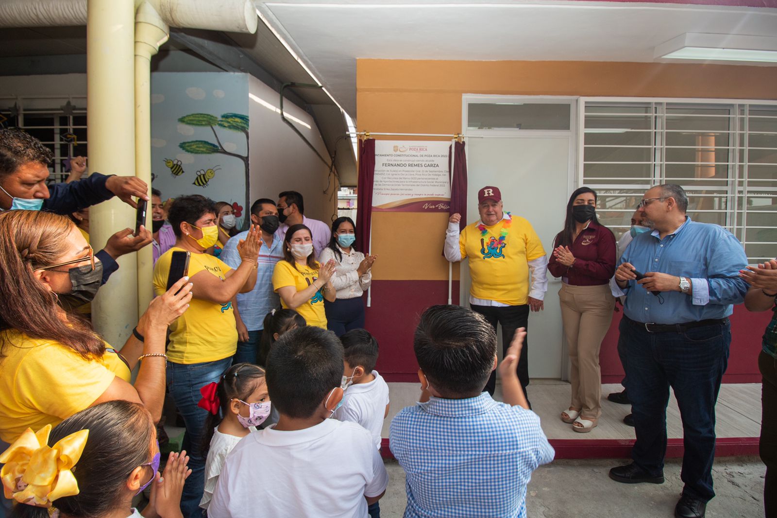 Este 19 de julio, durante la entrega de la obra, el alcalde Fernando Remes Garza refrendó su compromiso de trabajar por el bienestar de las y los pozarricenses, y aseguró que “la mejor inversión que podemos hacer es la educación de nuestros niños y jóvenes a quienes debemos proporcionarles las condiciones adecuadas para estudiar”.