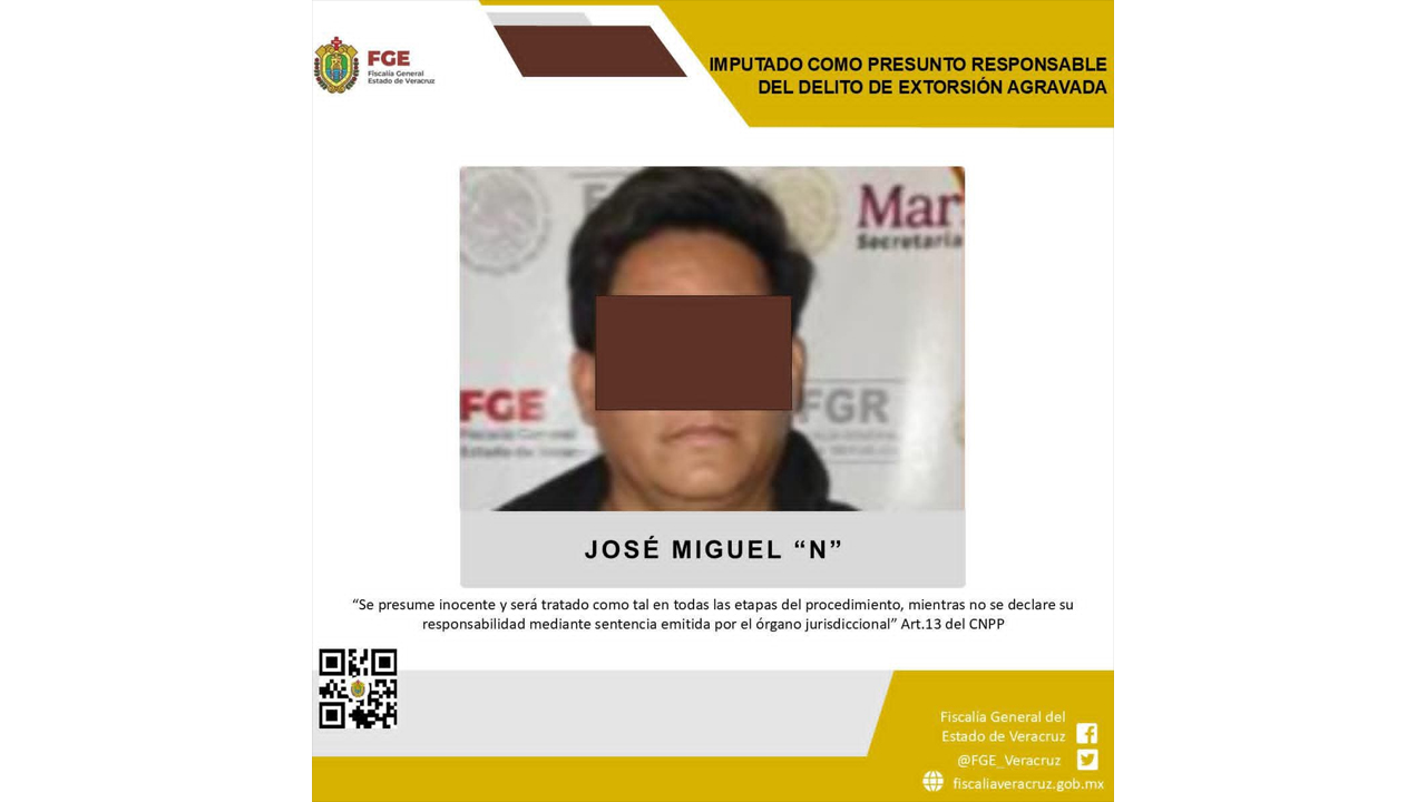 La Unidad Especializada en Combate al Secuestro y la Extorsión realizó imputación en contra de José Miguel “N”, como presunto responsable del delito de extorsión agravada en agravio de una víctima de identidad resguardada.