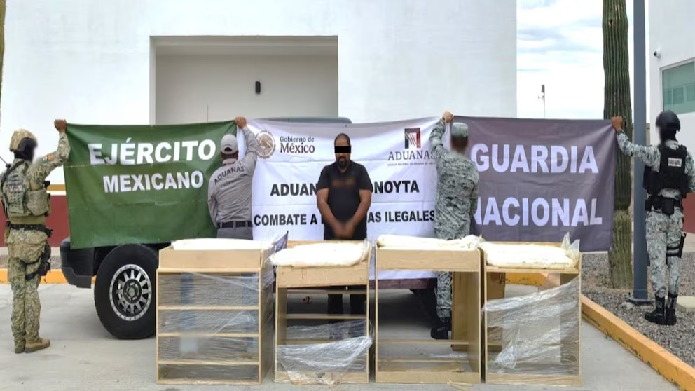 Procesan a estadounidense que planeaba sacar del país más de 21 millones de pesos en metanfetamina oculta en muebles
