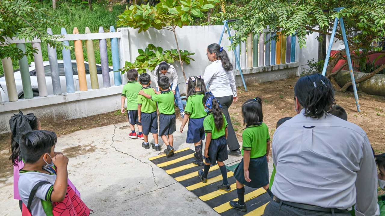 También se les enseñó a ser peatones responsables, destacando la importancia de caminar por la banqueta del lado derecho, cruzar las calles en las esquinas, utilizar las líneas peatonales y respetar las señales del semáforo. También se les recordó que los lugares seguros para jugar son los patios y parques, lejos de calles y avenidas.