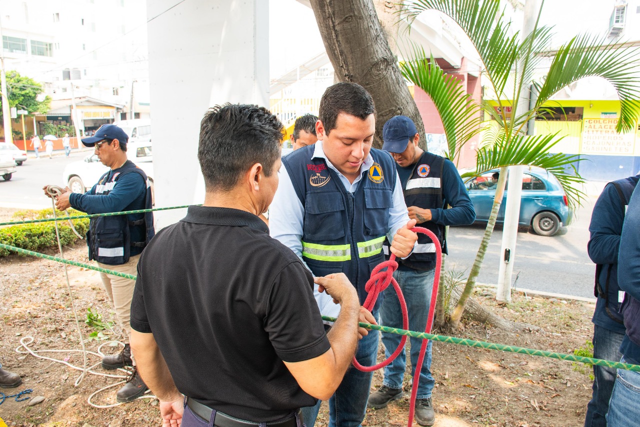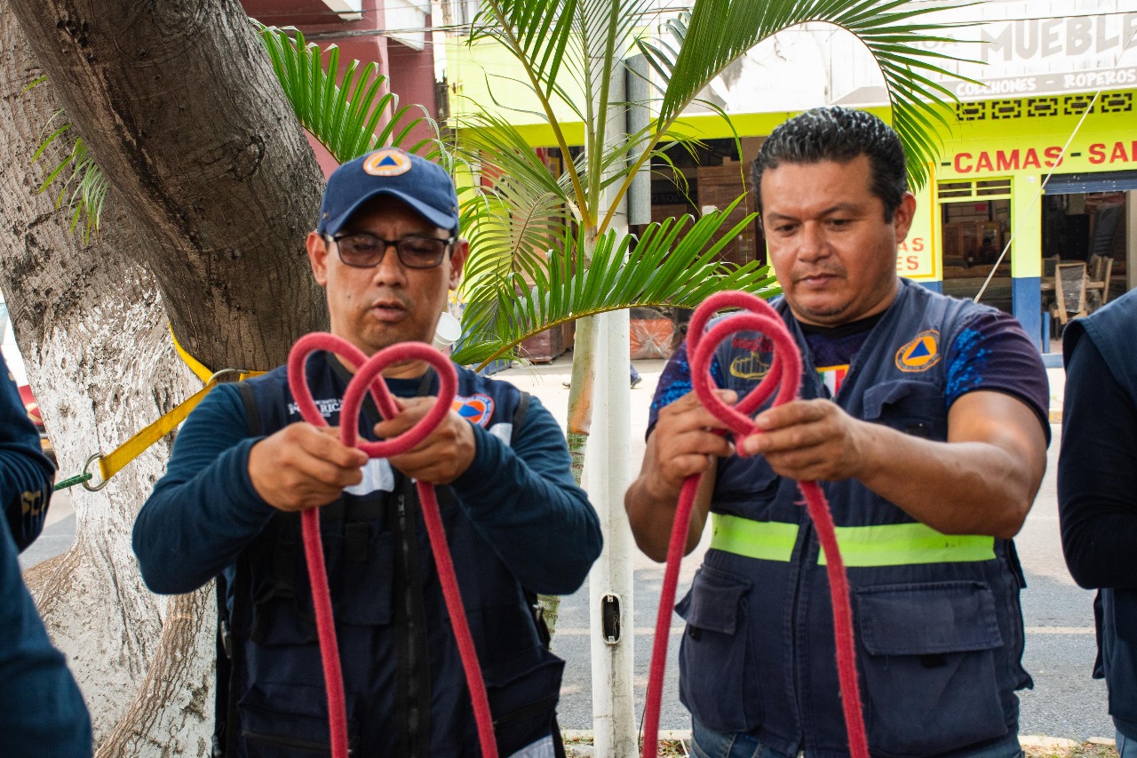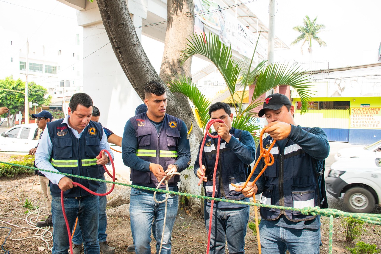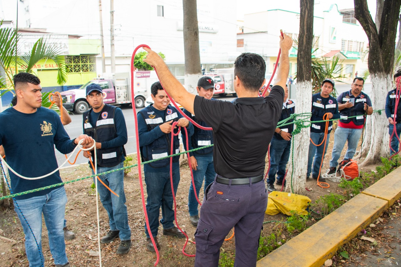 Poza Rica, Ver. – Con el propósito de reforzar los conocimientos técnicos en materia de rescate, este jueves se llevó a cabo un taller práctico sobre Nudos Básicos para situaciones de Rescate, con énfasis