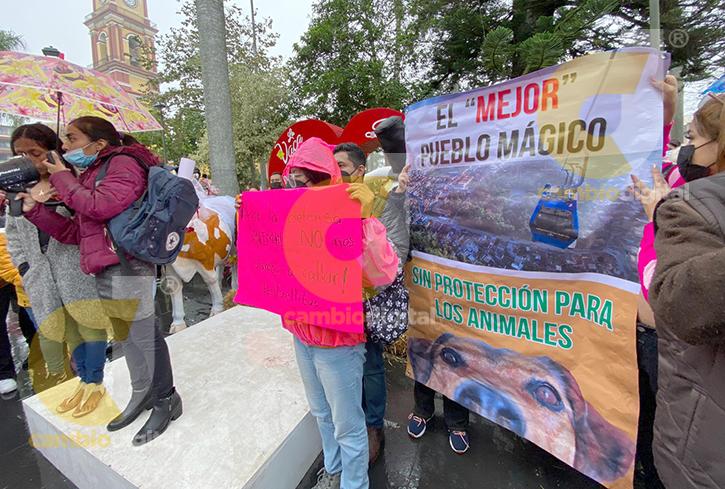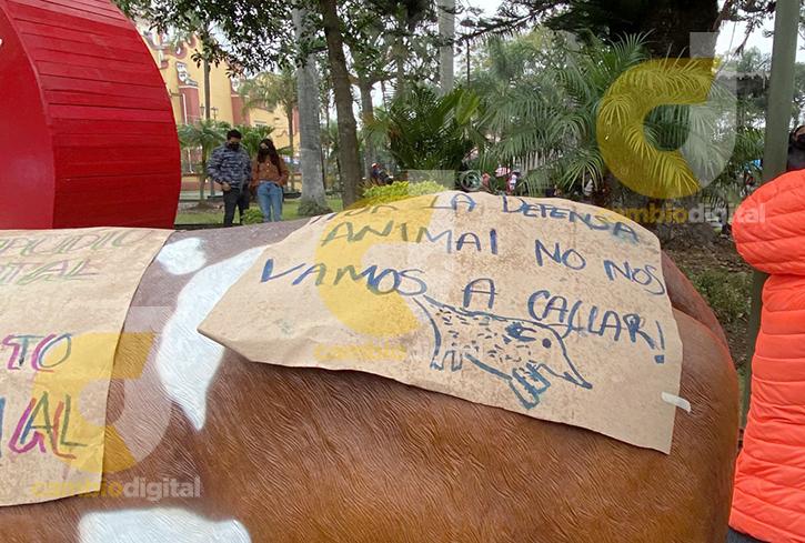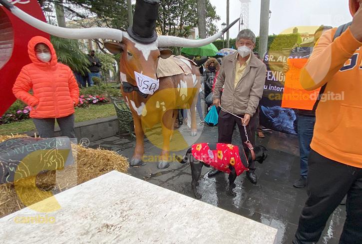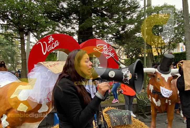 No es la sección 22 de la CNTE, ni la boda de Elba Esther Gordillo, pero igual animalistas llegaron a protestar a la boda del año de la vaca y el buey en Orizaba y reclamar que el alcalde Juan Manuel Diez Franco es ecocida y anti animalista.
