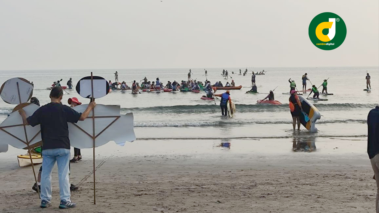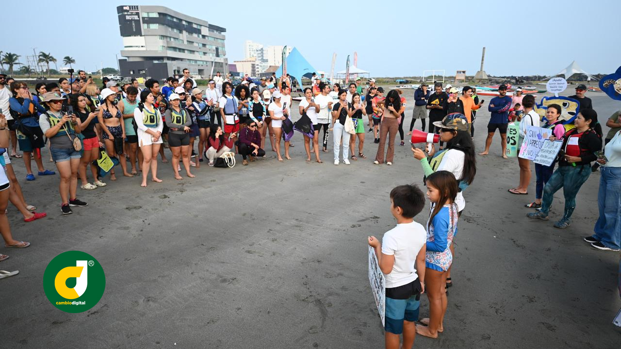 Los manifestantes participaron con más de 80 kayaks y tablas en las que remaron al mar para visibilizar la existencia del arrecife La Gallega, que forma parte del Parque Nacional Sistema Arrecifal Veracruzano (área natural protegida y sitio Ramsar).