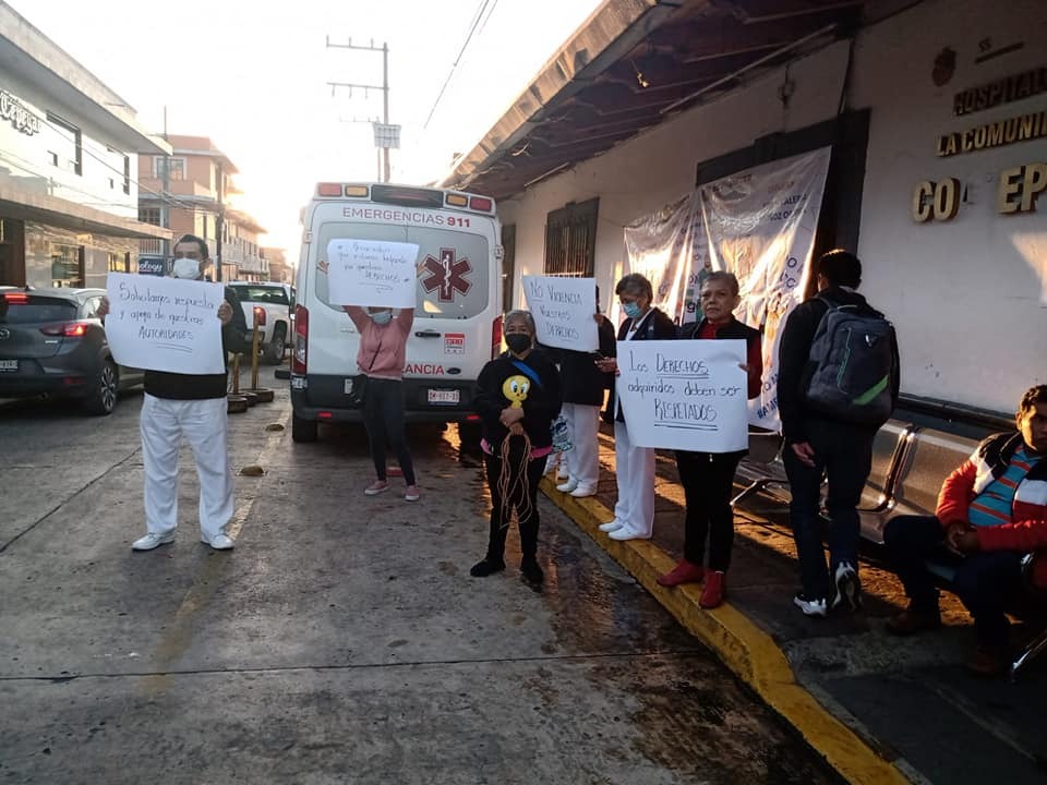 Protestan trabajadores de Hospital de Coatepec