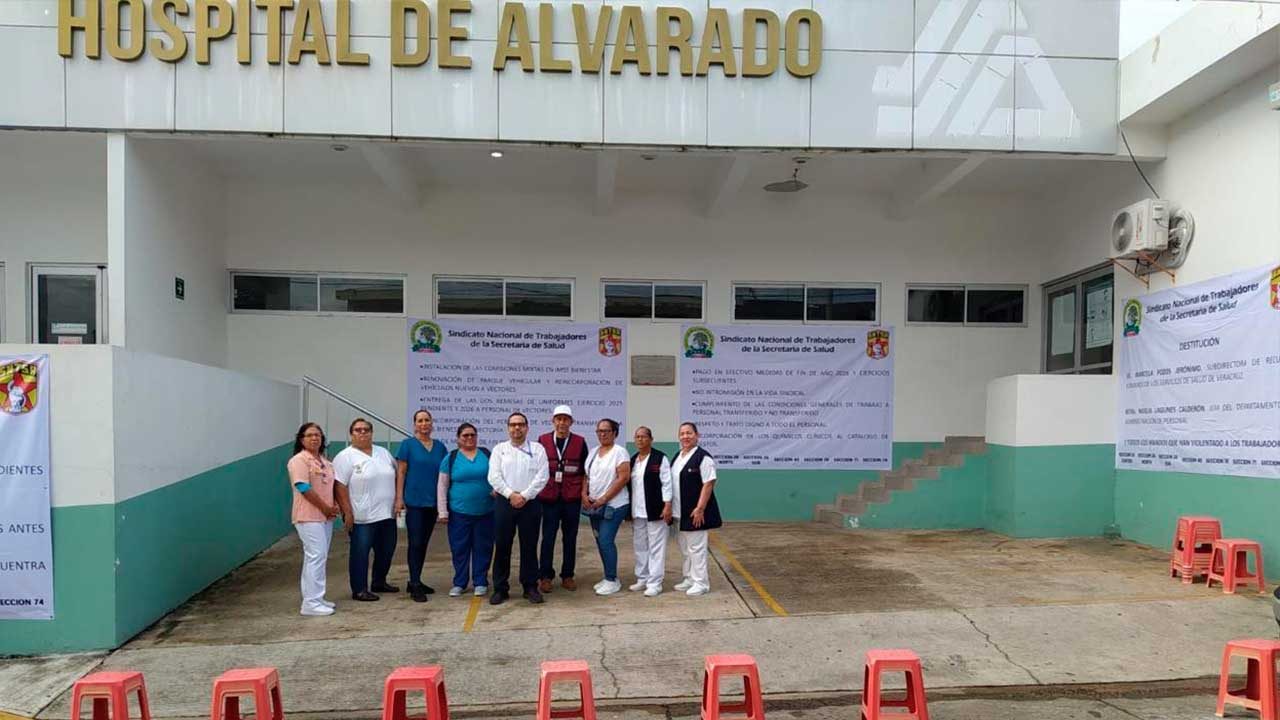 Veracruz, Ver.- Trabajadores de la Secretaría de Salud realizan manifestaciones de protesta con plantones afuera de los hospitales, centros de salud y jurisdicciones sanitarias del estado.