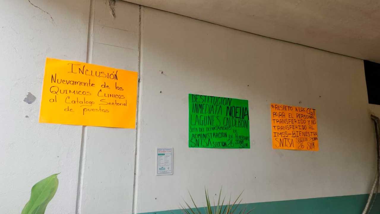 Entre las principales demandas se encuentran que les garanticen el abasto suficiente y de calidad de insumos médicos, asignación inmediata de plazas escalafonarias y de pie de rama previo a cualquier proceso de transferencia al IMSS-Bienestar; la entrega de medallas 2025, e n coordinación autoridad y SNTSA.