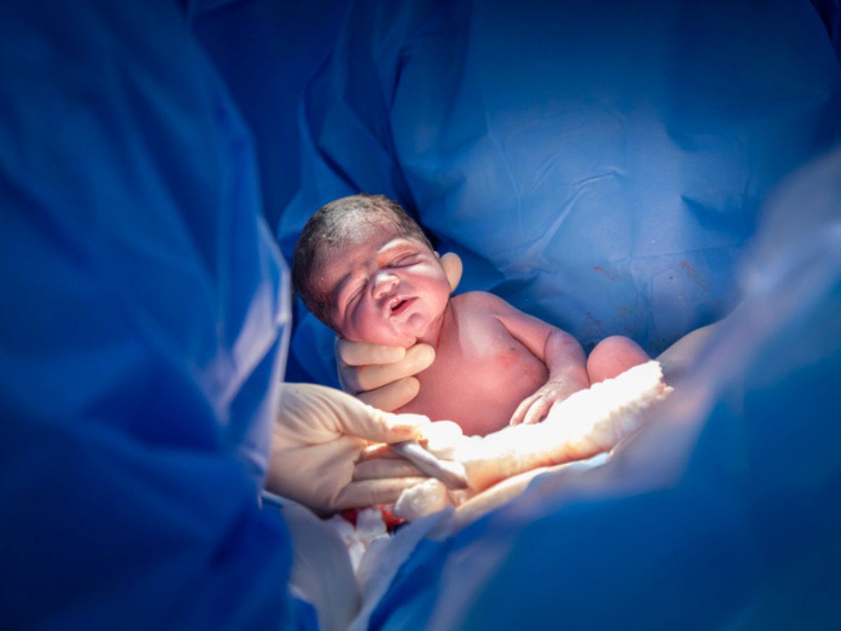 Nacimiento por cesárea. Se puede realizar un parto velado si el cirujano emplea determinadas técnicas que busquen mantener el saco intacto.