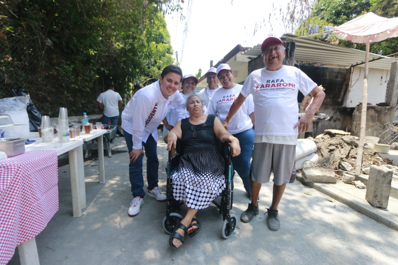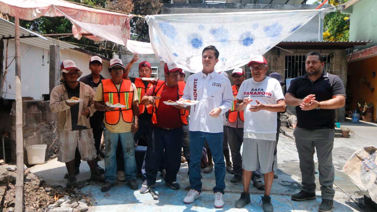 San Andrés Tuxtla, Ver.- Para festejar este 3 de mayo, "Día de la Santa Cruz", el candidato de la alianza Morena-PVEM, Rafa Fararoni, convivió con albañiles de la colonia Campeche de San Andrés Tuxtla.