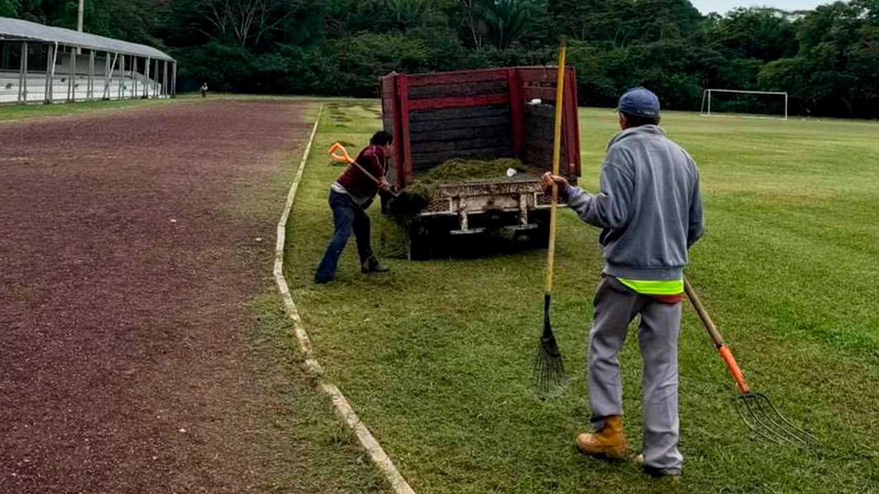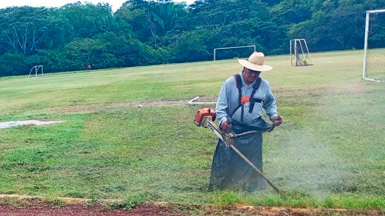Playa Vicente,Ver.- Por indicaciones del alcalde Ramiro Amezcua, personal de Parques y Jardines realizó trabajos de mantenimiento en el campo de pelota de la Unidad Deportiva, fortaleciendo espacios dignos para la recreación y el deporte en beneficio de la ciudadanía.