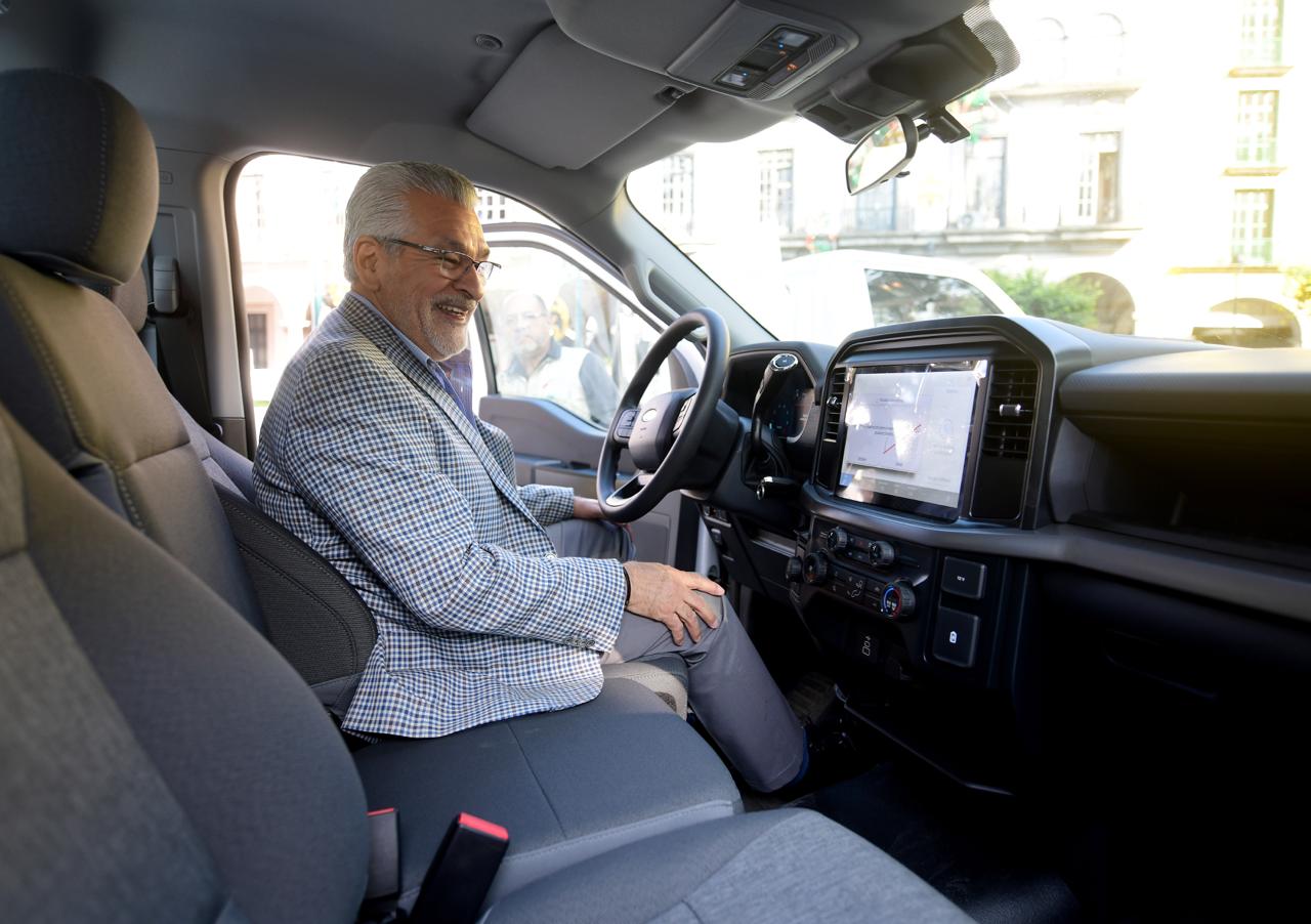 Durante el acto protocolario realizado en el parque Benito Juárez, se entregó un vehículo Transit Bus a la Policía Municipal; una camioneta con plataforma a la Dirección de Desarrollo Económico; una camioneta plano largo a la Coordinación de Imagen Urbana, y una camioneta F-150 a las direcciones de Limpia y Alumbrado Público.