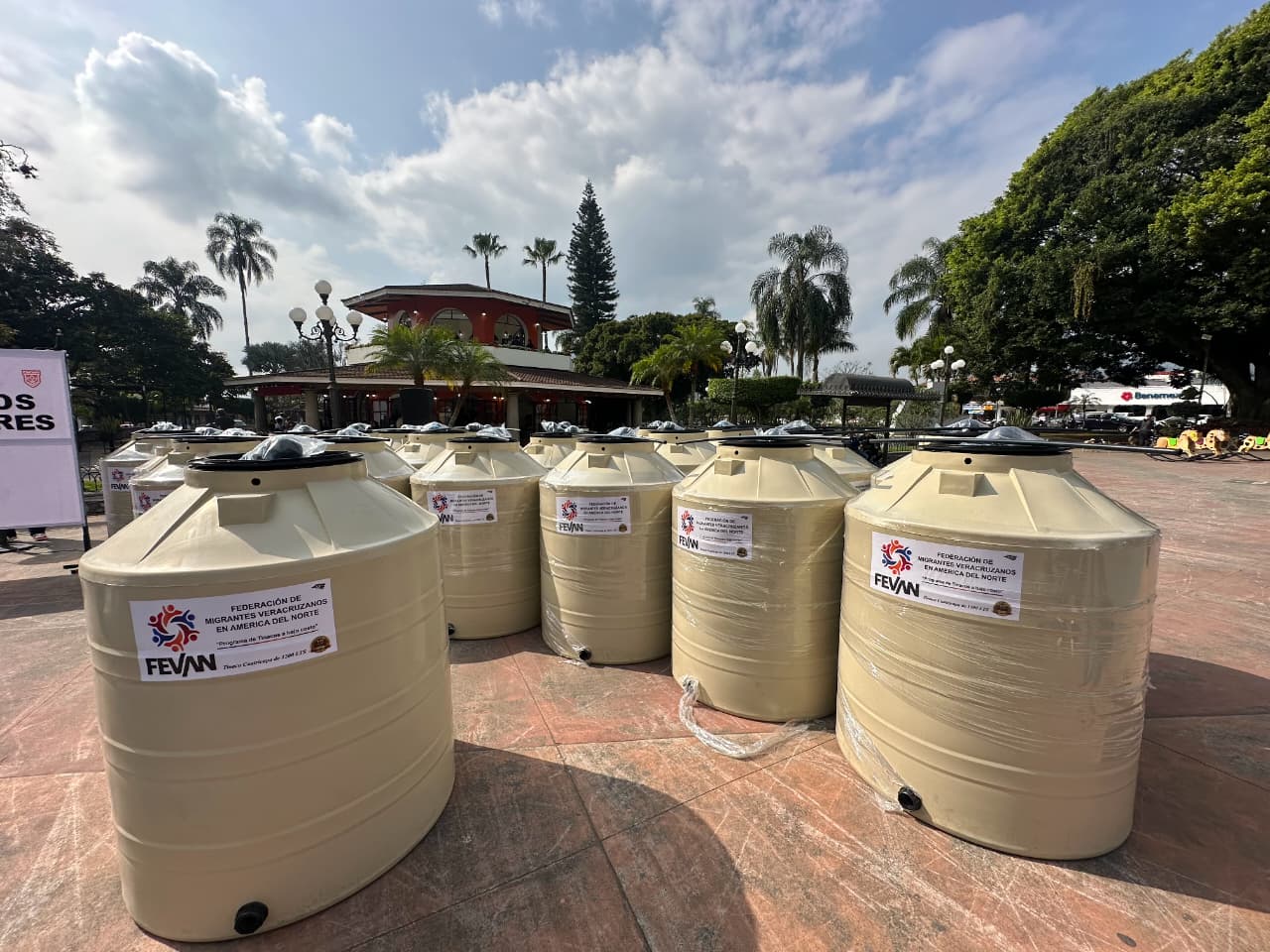 Fortín, Ver.- Esta mañana, el Sistema DIF Municipal de Fortín, encabezado por la Sra. Rosaura Delfín, así como el presidente municipal, Alfonso Efraín “Piccolo” Marín Delfín, autoridades municipales y Gerardo Gallardo, director de la Federación de Migrantes Veracruzanos en América del Norte (FEVAN) realizaron la entrega masiva de “Tinacos y Calentadores Solares” a la población que formó parte de la campaña.