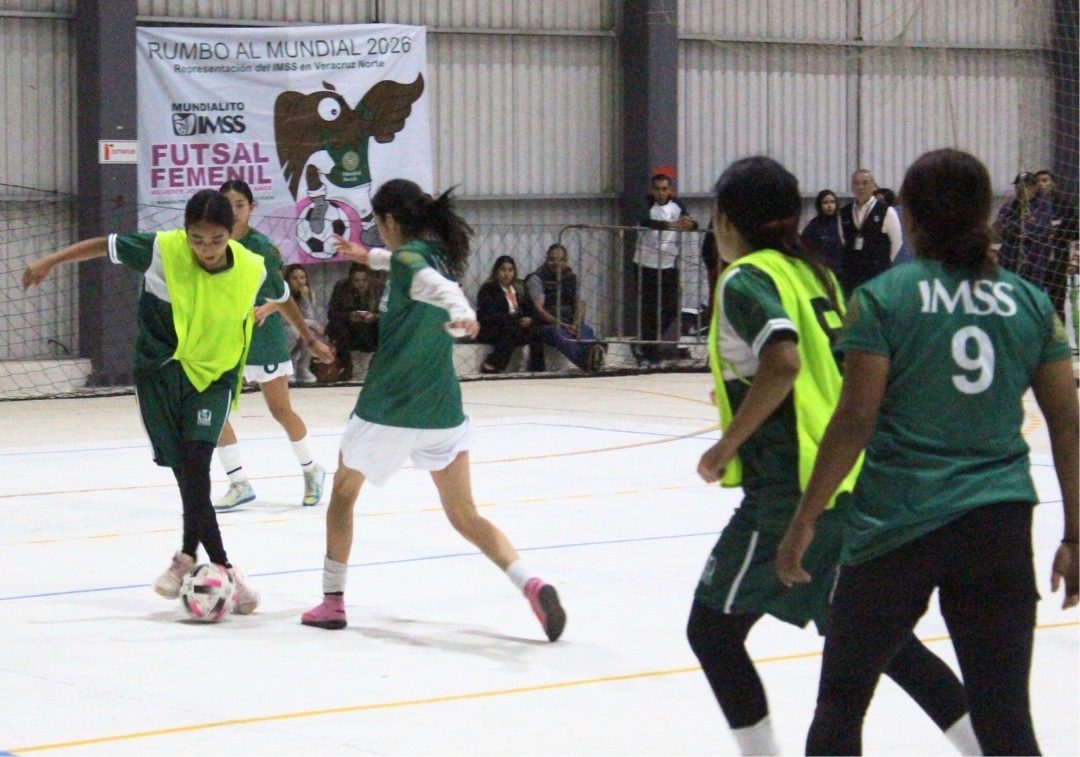 Xalapa, Ver.- El Instituto Mexicano del Seguro Social (IMSS) en Veracruz Norte llevó a cabo la clausura del torneo clasificatorio “Futsal Femenil” Sub-21, en el que participaron jugadoras de futbol de 18 a 21 años, rumbo al “Mundialito IMSS 2026”.