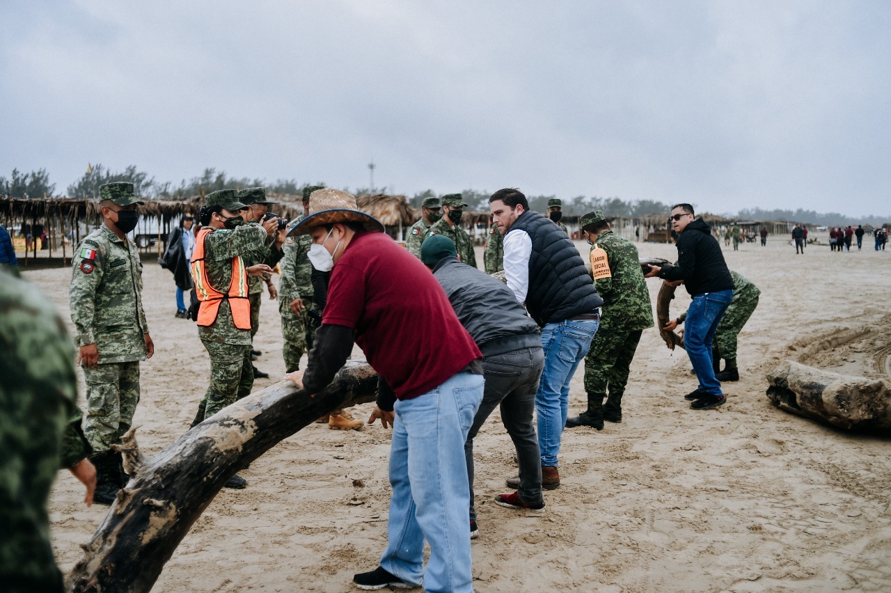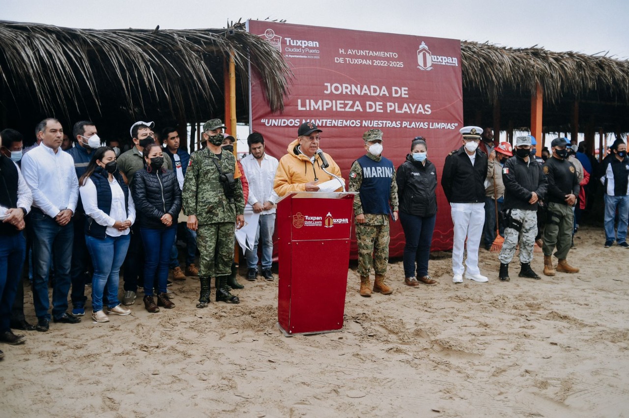 Tuxpan, Ver.- Ni el frío, ni la lluvia detuvo el ánimo y determinación de cientos de ciudadanos voluntarios, estudiantes, elementos de instituciones públicas federales y estatales, empresarios, maestros y servidores públicos municipales que participaron activamente en el primer día de limpieza de playas.