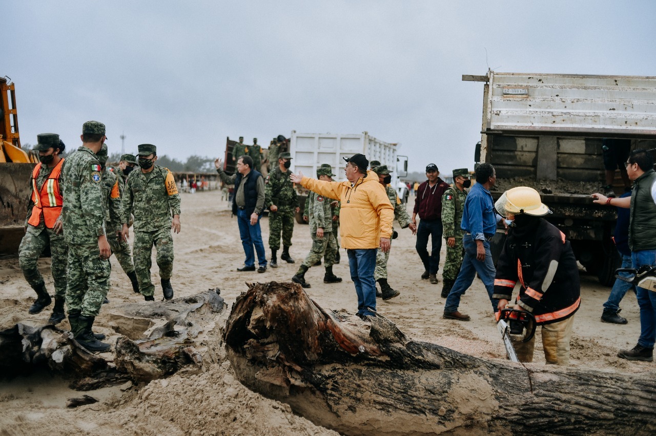 Para retirar la palizada y troncos enterrados en la playa fue necesario desplegar 4 retroexcavadoras, un payloader, 3 motoconformadoras y 10 camiones de volteo de 13 metros cúbicos.