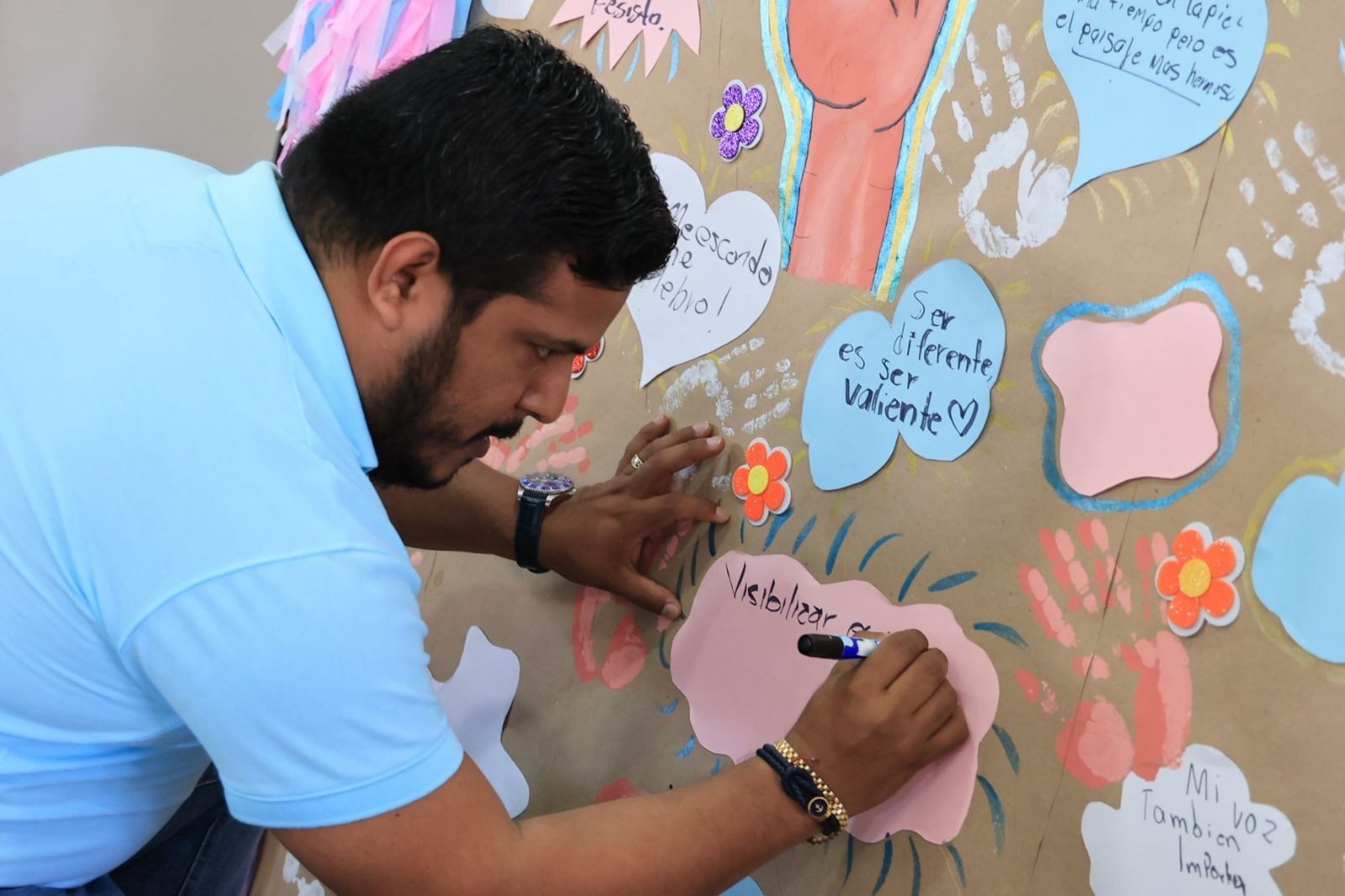 Catemaco, Ver.- A través de la Coordinación LGBTTIQ+ Catemaco, en la sala de Cabildo de Ayuntamiento se llevó a cabo la realización de un mural con la participación de personas trans y ediles, en el marco del Día Internacional de la Visibilidad Transgénero, sumando esfuerzos para visibilizar, reconocer y promover una sociedad más incluyente.