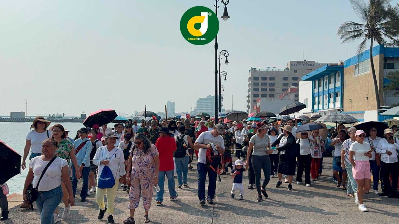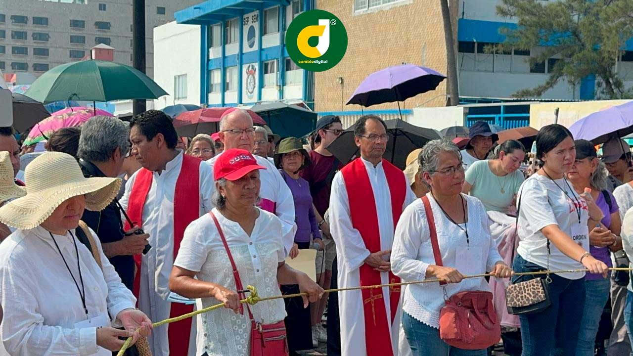 Bajo los intensos rayos del sol, cientos de veracruzanos, la mayoría con gorro o sombrilla, acompañaron al obispo de la diócesis católica de Veracruz, Carlos Briseño Arch, en el recorrido de uno de los días más importantes de la Semana Santa.