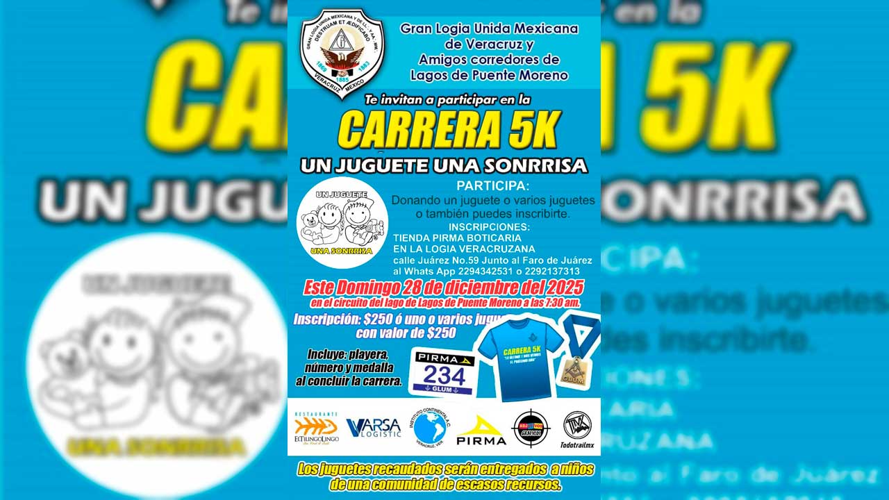Medellín, Ver. — Con el objetivo de brindar momentos de felicidad a niñas y niños de escasos recursos durante las fiestas decembrinas, el próximo domingo 28 de diciembre se llevará a cabo la Carrera con causa 5K “Un juguete, una sonrisa”.