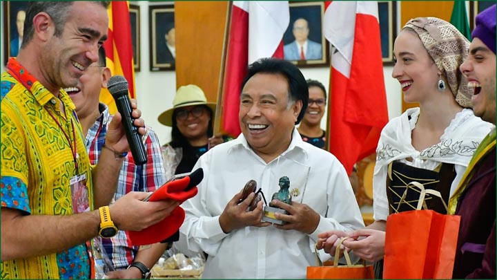 Este día, el Presidente Municipal, Juan Martínez Flores, recibió a las delegaciones de Colombia; Cataluña, España; Ecuador; Puerto Rico; Perú, México y Oaxaca, que participan en el 6to Festival Internacional del Folklore, donde intercambiaron obsequios y agradecieron por el apoyo a la danza, la música y el renacer de la cultura.