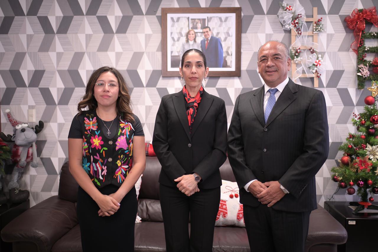 *La presidenta de la Mesa Directiva, diputada Naomi Edith Gómez Santos, y el secretario de la Comisión de Procuración de Justicia, diputado Adrián Ávila Estrada, atestiguan este acto
