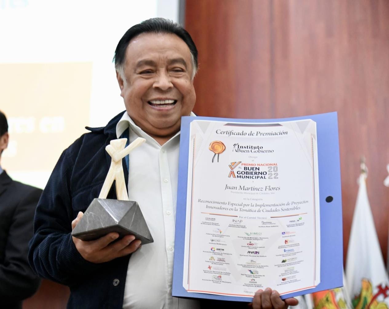 Córdoba, Ver.- Este viernes el alcalde de Córdoba, Juan Martínez Flores, fue distinguido con el “Reconocimiento Especial por la Implementación de Proyectos Innovadores en la Temática de Ciudades Sostenibles”, por el proyecto “Sembremos Vida”, una campaña permanente que durante 2022 logró la reforestación con más de 17 mil árboles de diversas especies.