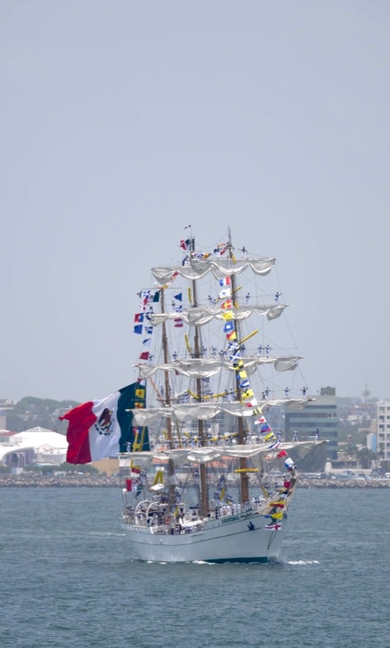 Acompañado por autoridades de los tres órdenes de Gobierno, a bordo del buque Papaloapan, el mandatario disfrutará de la ceremonia marítima y el desfile aéreo, en el cual participarán las embarcaciones “Libertad”, proveniente de Argentina; “Cisne Branco”, Brasil; “Gloria”, Colombia; “Capitán Miranda”, Uruguay, y Buque Escuela Velero “Cuauhtémoc”, digno representante de México.
