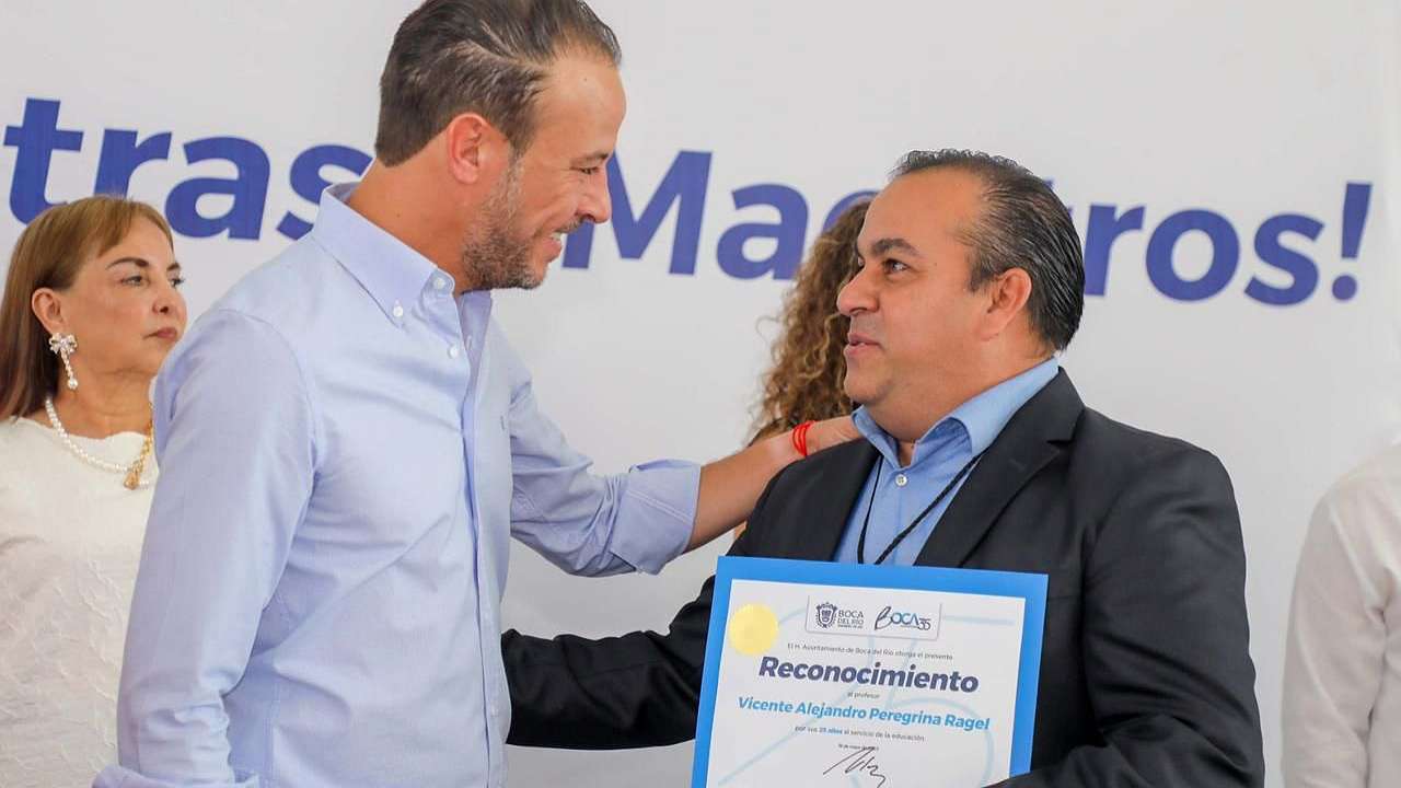Boca del Río, Ver.- El Alcalde de Boca del Río, Juan Manuel Unánue Abascal, celebró el Día del Maestro reconociendo su labor al frente de las aulas así como la formación de diferentes generaciones de boqueños.