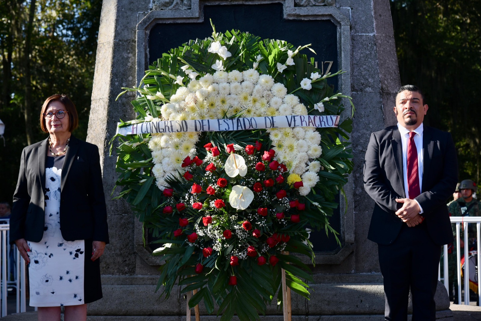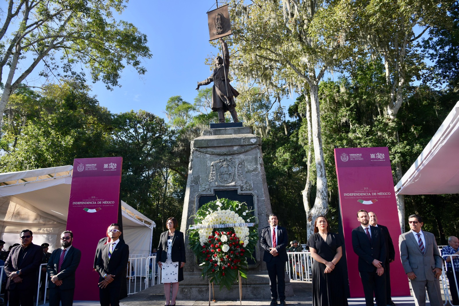 Xalapa, Ver.- Las y los integrantes de la LXVI Legislatura del estado, encabezados por la presidenta de la Mesa Directiva, diputada Margarita Corro Mendoza, y por el presidente de la Junta de Coordinación Política, diputado Juan Javier Gómez Cazarín, realizaron la Guardia de Honor ante el monumento a Don Miguel Hidalgo y Costilla, en conmemoración por el CCXIII aniversario del inicio de la lucha por la independencia nacional.