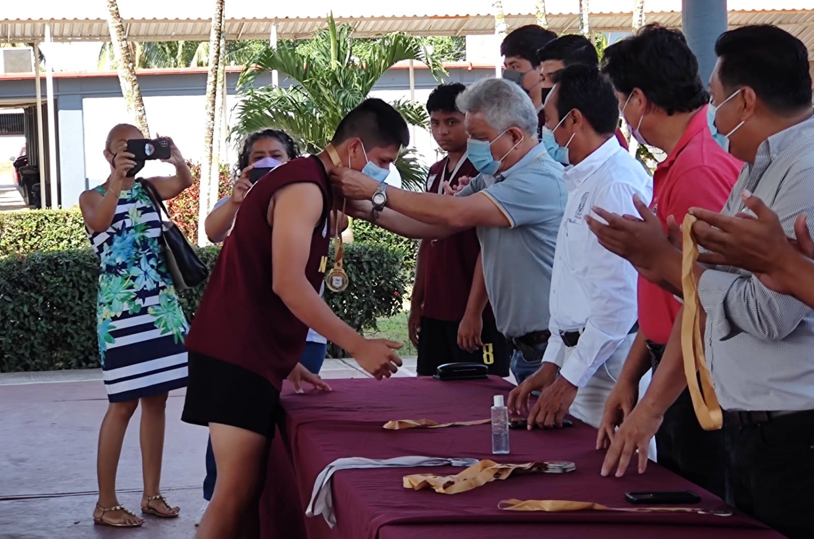 Nanchital, Ver. - En reconocimiento a sus esfuerzos, esta mañana en las instalaciones del COBAEV 34, se llevó a cabo la entrega de medallas a los jóvenes de Nanchital, que triunfaron en el Estatal de los Juegos ANEVM 2022 en Las Choapas.