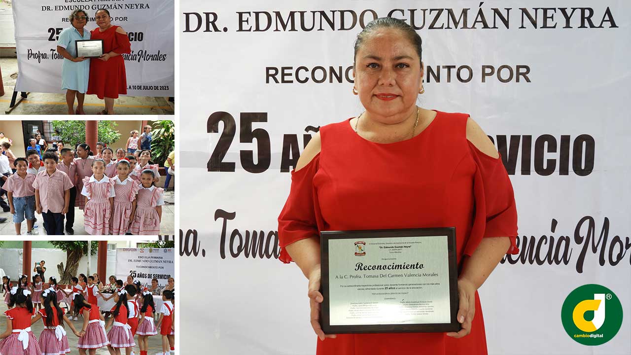 La maestra Indira Capitanachi Galván, directora de la Escuela Primaria “Dr. Edmundo Guzmán Neyra” y el personal docente, felicitaron a la maestra “Tommy” reconociendo el gran trabajo que desempeña en las aulas compartiendo sus conocimientos con sus pequeños alumnos.