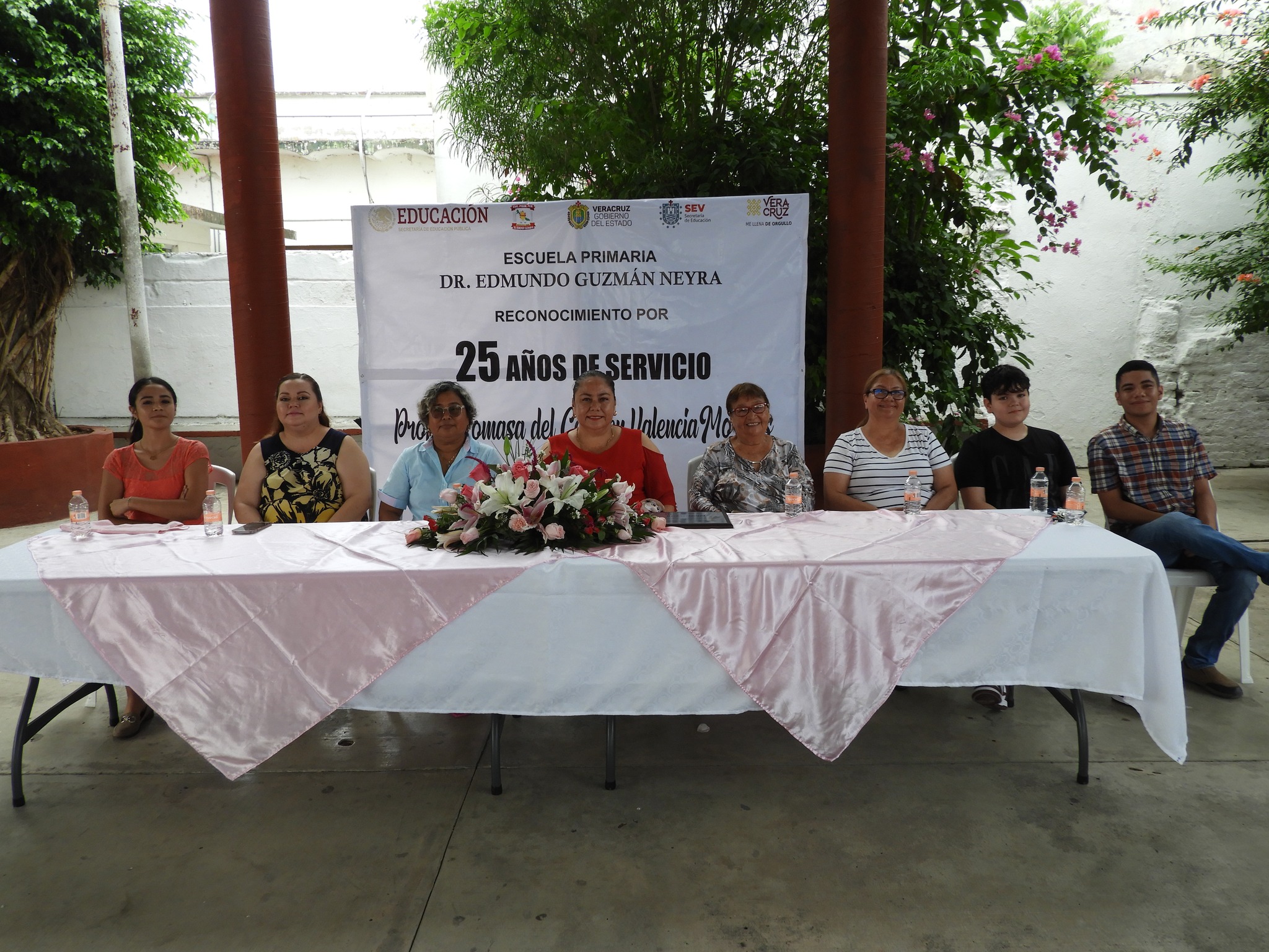 Pánuco, Ver. – El pasado lunes 10 de Julio en las instalaciones de la Escuela Primaria “Dr. Edmundo Guzmán Neyra”, se llevó a cabo un sencillo, pero muy emotivo homenaje en reconocimiento por sus 25 años de servicio en el magisterio de la maestra Tomasa del Carmen Valencia Morales.