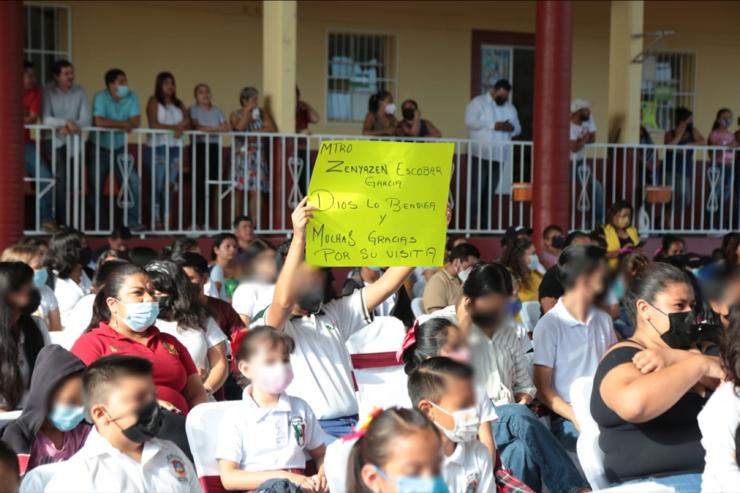 Asimismo, expresó su alegría por estar en la localidad y por el recibimiento que le dieron las y los niños, a quienes invitó a estudiar y lograr lo que se propongan, pues de esta primaria han egresado cuatro presidentes municipales, así que pueden ser doctoras, doctores, ingenieras, ingenieros, maestras, maestros, diputadas, diputados, gobernadoras, gobernadores, por ejemplo, pero siempre con el apoyo de la familia y docentes.